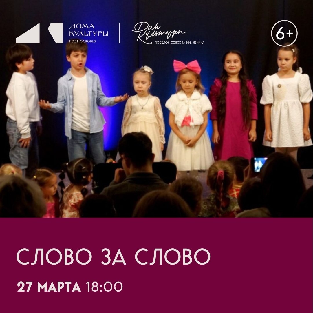 ✅ пос. совхоза им. Ленина, 18Б ✅ Вход свободный 6+ "СЛОВО ЗА СЛОВО" творческий вечер студии художественного слова "Логос" Наши юные таланты откроют вам мир детской поэзии. Вы услышите искренние и трогательные стихотворения, исполненные детьми студии художественного слова. Мы рады поделиться с вами прекрасным миром искусства и подарить незабываемые впечатления. Пусть эта встреча станет ярким событием для всей семьи и подарит вдохновение каждому гостю! Не пропустите!