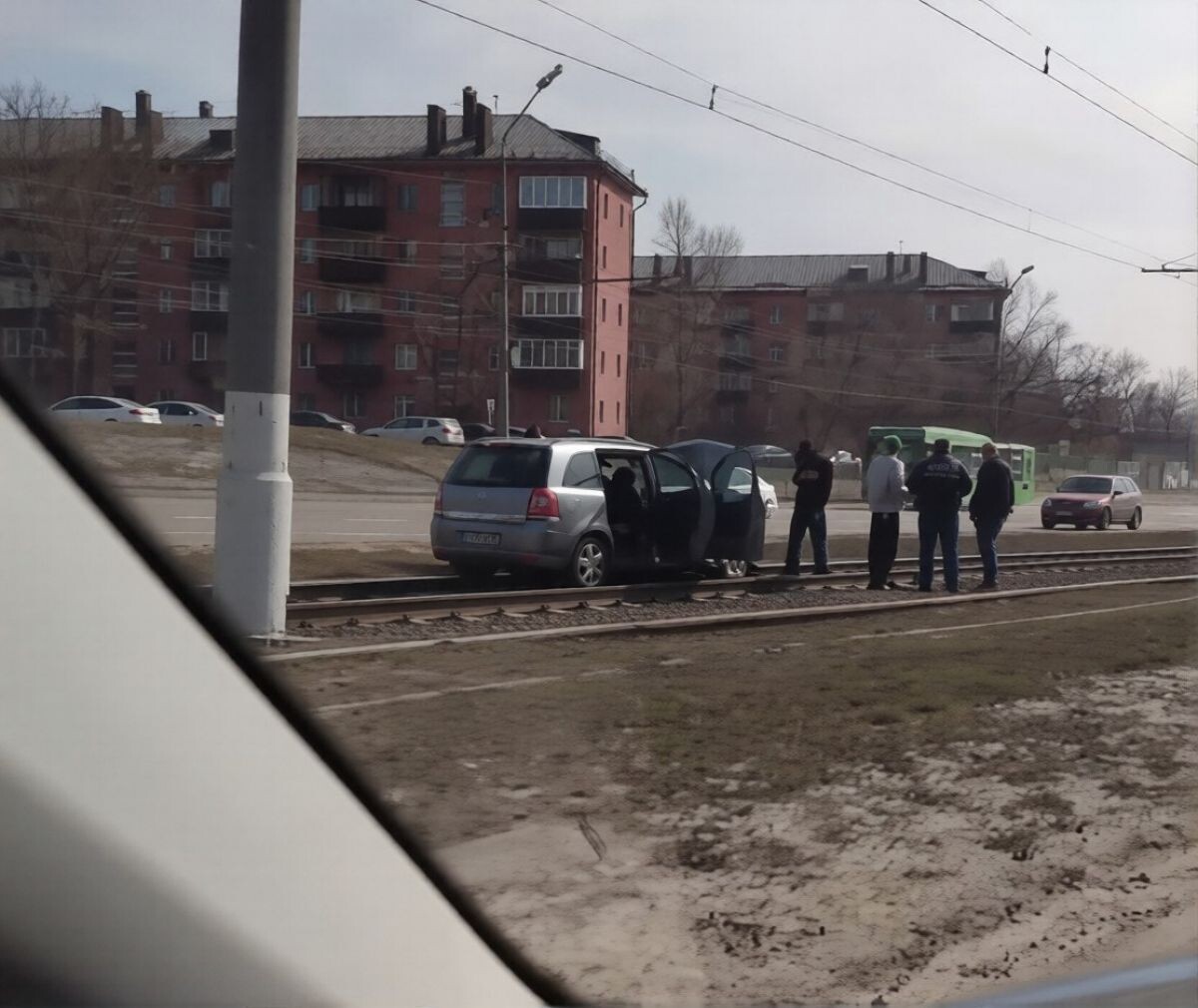 В Курске автомобиль вылетел на трамвайные пути через отбойник на улице Энгельса