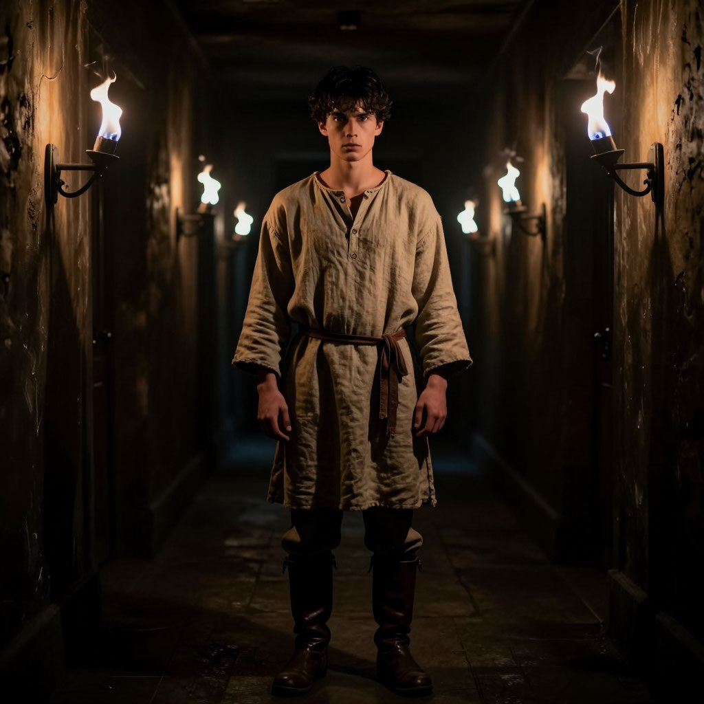 Миросоты - фэнтези. © Владимир Фидж, 2026 г. Все права защищены. Начало тут Глава 2 Гриша вышел из темноты в освещённый факелами коридор. Там, как и в пещере, были изображены иероглифы и рисунки. В какой‑то момент молодой человек остановился. Он обернулся и увидел позади себя тупик. «Но как?» — подумал Гриша и побежал обратно. Он начал ощупывать стену, где раньше был проход. — Где я? — вслух произнёс парень. Он повернулся и решил пойти дальше по коридору. Там было очень жарко. И тогда молодой человек снял свою куртку и кинул её на землю. Метров через сорок показался выход. Гриша вышел из него и увидел вокруг себя пустыню. Раскалённый от солнца жёлтый песок был повсюду. Справа от выхода из туннеля, примерно в километре, был высокий холм. Он решил забраться туда в надежде разглядеть что‑нибудь с возвышенности. Поправив рюкзак, он отправился в путь. Ноги по щиколотку утопали в песке. Идти было очень тяжело. Спустя минут тридцать Гришина одежда стала мокрой от пота. «Боже мой, как же жарко
