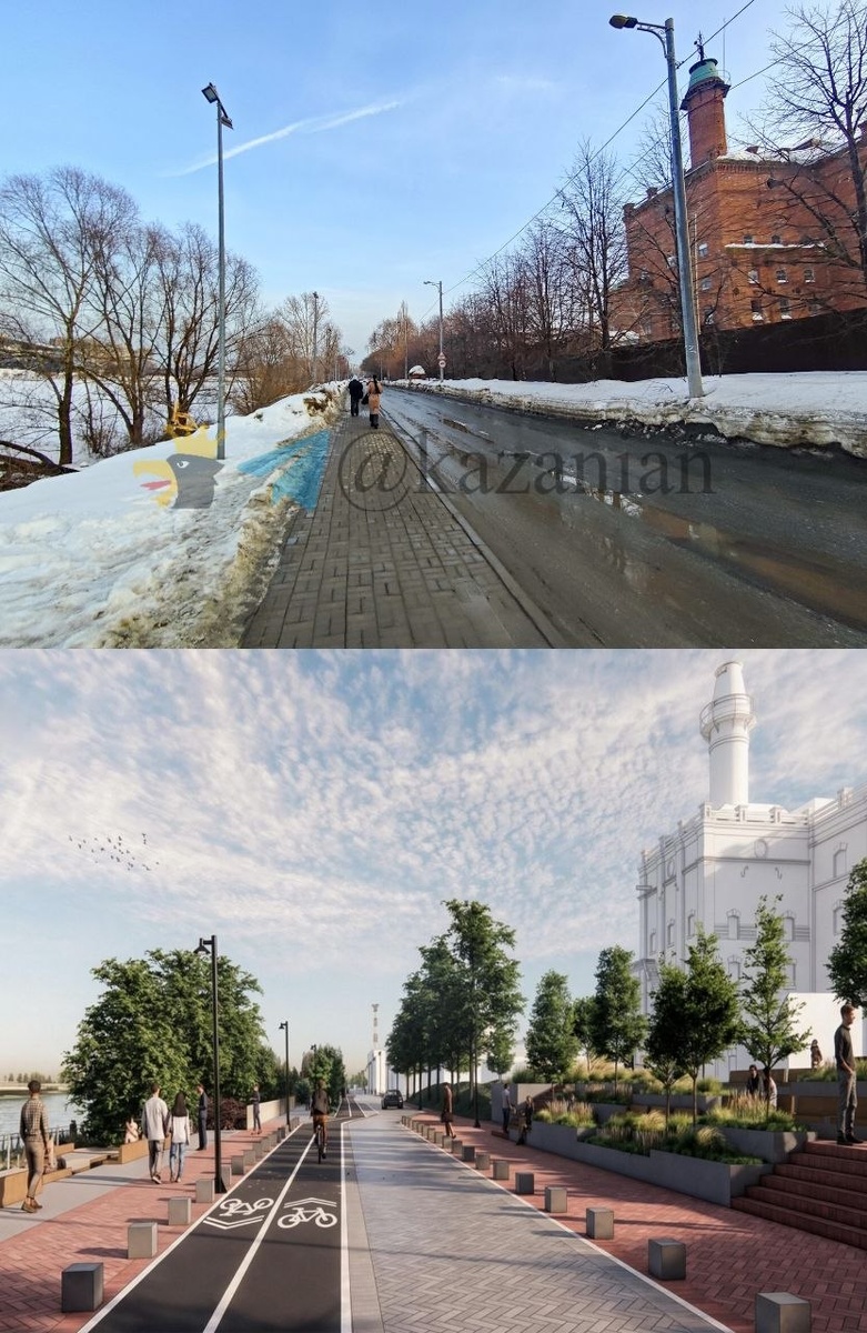 ? В прошлом материале о третьей очереди реконструкции набережной озера Кабан мы писали про "нижнюю часть" работ, которые уже стартовали. Сегодня подробно остановимся на "верхней части" проекта — реорганизации дорожного движения по улице Шигабутдина Марджани. Её планируют начать и завершить в 2027-м году. По мировому опыту было установлено, что для обеспечения комфортных условий пешеходов необходимо сделать больше улиц с безопасными пешими прогулками. Так, чтобы человек реже испытывал стресс из-за опасности быть сбитым автомобилем. Необходимо достаточное количество тихих прогулочных пространств с зелёными насаждениями. Радикальная реорганизация ул. Марджани Итак, что представили архитекторы из бюро Wowhaus и «АрхДесант»: — Автомобильная дорога станет односторонней — в направлении от улицы Татарстан к площади Вахитова; — Увеличится количество пешеходных переходов, их станет 15; — Вместо двух полос будет одна с максимальной шириной 4,5 метра; — Разрешённую максимальную скорость снизя
