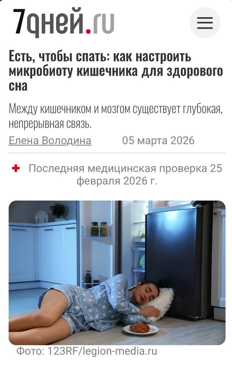 : «Я вроде бы ложусь вовремя… но не высыпаюсь» И дальше — про тревожные мысли, ранние пробуждения, усталость с утра. И каждый раз мы начинаем разбираться чуть глубже. Не только про режим или стресс. А про то, что обычно остаётся «за кадром» — про кишечник 😲 Да-да, для многих это неожиданно, но именно там происходит большая часть процессов, влияющих на наш сон. 🥗 Я часто вижу, как небольшие изменения — особенно в вечернем питании — дают заметный эффект. Не мгновенный, но устойчивый. 📰 В своём интервью я подробно разбираю эту тему: без крайностей, без «волшебных таблеток», а с понятной логикой — как питание и микробиота связаны со сном и что с этим можно сделать в реальной жизни. Если вы тоже чувствуете, что «что-то не так» со сном — возможно, стоит посмотреть на это чуть шире. Я собрала всё в статье — можно почитать здесь. Иногда самые важные ответы оказываются не там, где мы их ищем 🧡