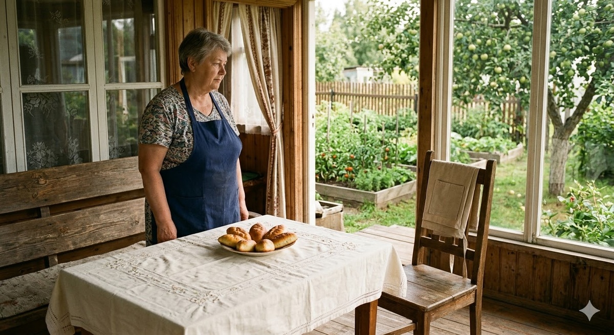 На кухне дачного домика пахло прогретым деревом. Наталья достала миску из шкафа, поставила на стол и вытерла передник — тот самый, с вышитой ромашкой, которую Соня нарисовала в пять. Ромашка давно вылиняла и стала бледно-зелёной, но Наталья всё равно надевала его каждое утро, потому что другие фартуки были просто фартуки, а этот — Сонин подарок.