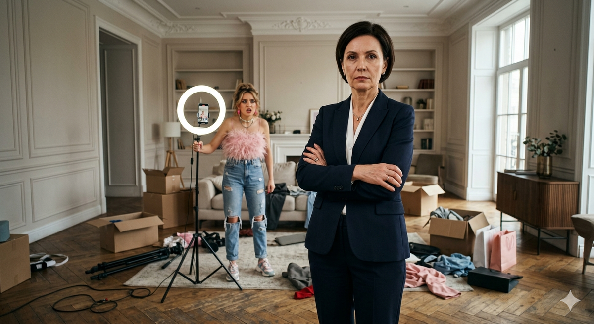 Марина Владимировна замерла. В собственной кухне, которую она проектировала полгода, выбирая каждый фасад, она чувствовала себя лишней. На ее столе вместо уютной вазы с печеньем теперь стояли кольцевые лампы, штативы и гора пустых коробок от косметики.