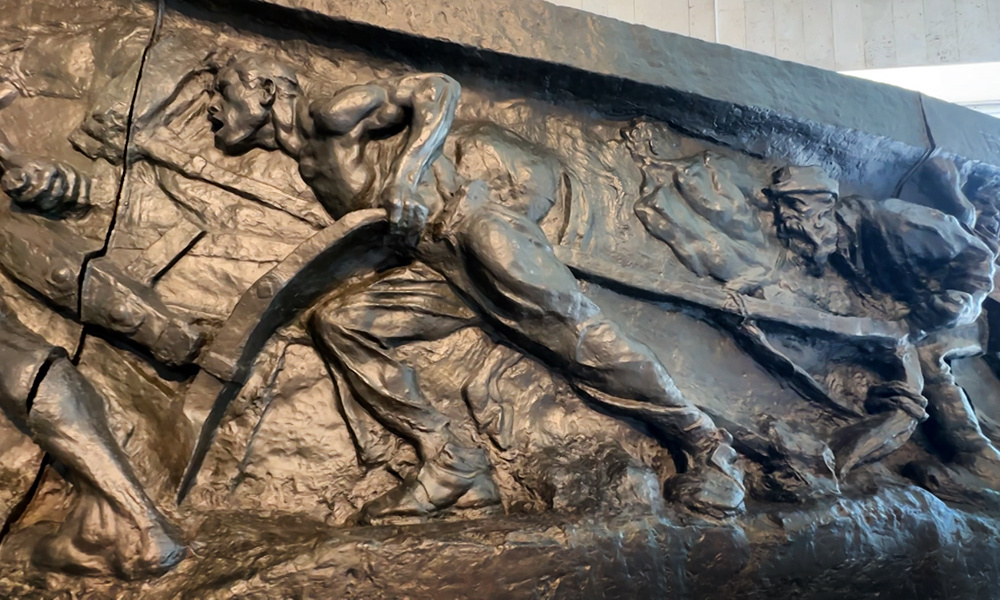 А вы знали, что иногда искусству нужно простоять век на морозе, чтобы по-настоящему согреть наши души? Вот и знаменитые крестьяне советского скульптора Ивана Шадрина, наконец-то, отложили свои бронзовые плуги и перебрались в тепло. Почти сто лет назад эта монументальная композиция, где суровые труженики упорно вспахивают землю, задумывалась как часть грандиозного фонтана. Вода должна была бить ключом, а крестьяне — символизировать вечное движение. Но, как говорил классик, «хотели как лучше, а получилось как всегда». Проект фонтана так и остался на бумаге, а отлитый в бронзе рельеф отправился на долгие десятилетия во внутренний дворик Третьяковки — принимать снежные ванны и слушать московских ворон. В 2018 году реставраторы посмотрели на уставших пахарей и решили: пора ребятам в санаторий. Исследования показали деформацию фрагментов, разрывы и ту самую «неравномерную патину», которая в мире людей называется просто — радикулит от столетних сквозняков. Годы кропотливой работы, заботливых