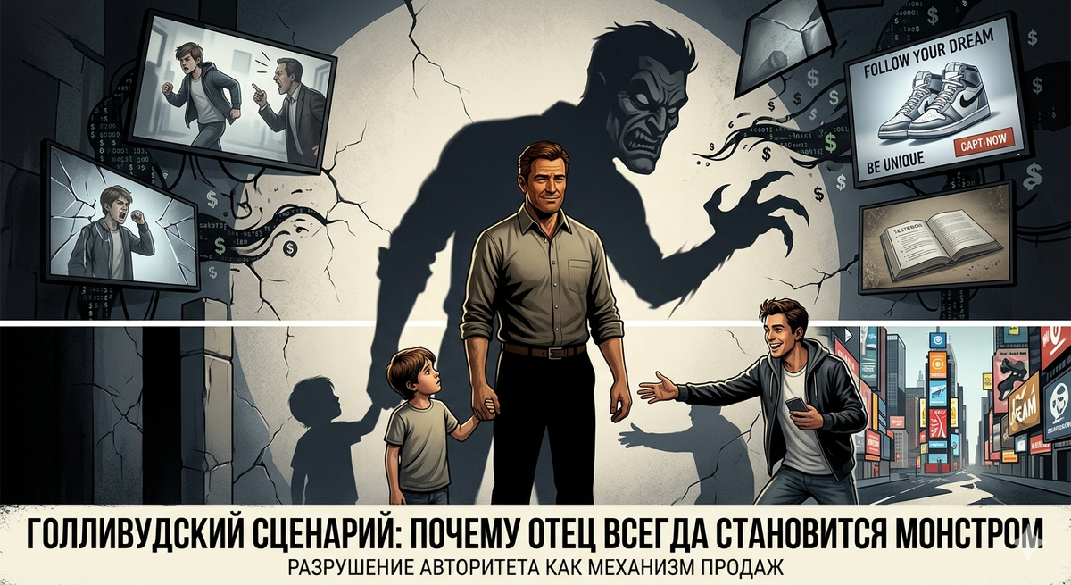 Разрушить авторитет отца. Сделать его фигуру не просто ненужной, а вредной. Вот что продаёт Голливуд. И продаёт он это не потому, что все сценаристы — обиженные дети. А потому, что это работает. Это выгодно.