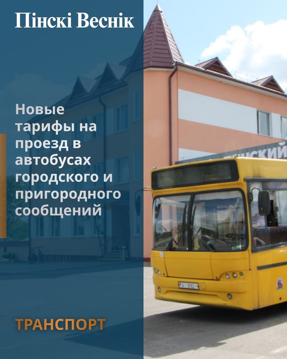 ➡️С 25 марта 2026 года вступают в силу новые тарифы на перевозки пассажиров (решение Брестского облисполкома № 177 от 19.03.2026). 🔄Городские маршруты (Пинск): разовая поездка — 1,05 рубля; билет у водителя — 1,10 рубля. 🔄Проездные билеты (Пинск): на 1 день — 3,26 рубля; на декаду — 16,18 рубля; на месяц — 46,00 рубля. 🔄Пригородные маршруты: за 1 км проезда — 0,14 рубля. ✔️Провоз багажа и ручной клади (пригород): маломерное место — 0,02 рубля/км; среднемерное — 0,03 рубля/км; крупномерное — 0,06 рубля/км @Пинский Вестник 📱Ютуб 📱ВК 📱ИНСТАГРАМ 📱ОК 📱ФЕЙСБУК 📱ТИК ТОК Сайт Прислать новость