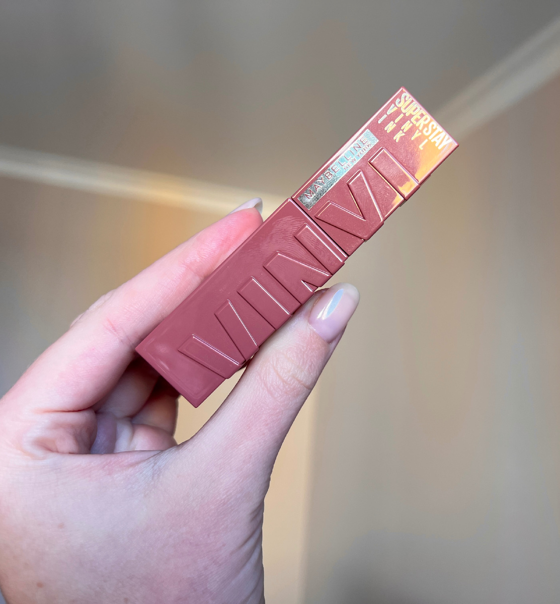 Я взяла эту хваленую виниловую (= стойкую, глянцевую) помаду от Мейбиллин в оттенке 35. Из всей линейки мне понравилась только парочка, этот на мой вкус самый