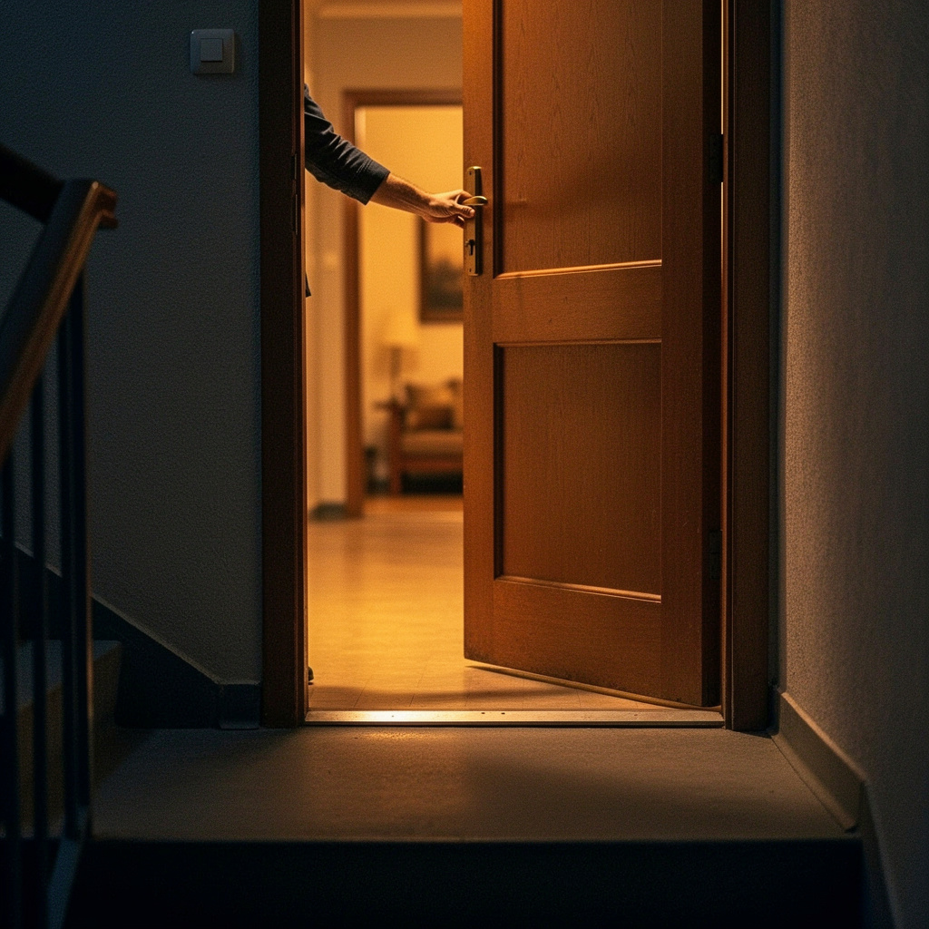 А через час муж вышел в коридор и произнёс ту самую фразу. Дверь там.