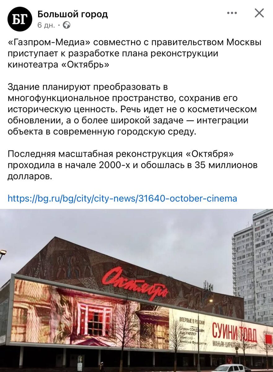 Как-то тревожно за кинотеатр «Октябрь», потому что у нас слово «реконструкция» обычно означает полный снос. Сейчас вот дом кино реконструируют