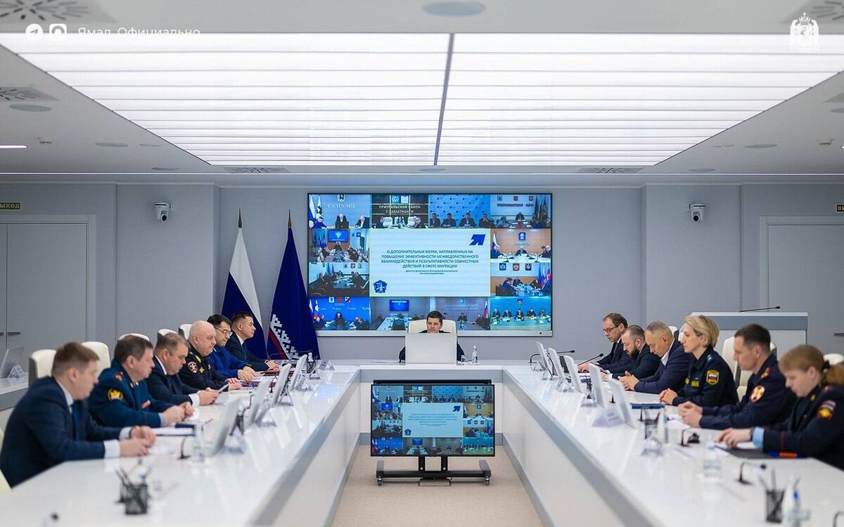На заседании регионального координационного совещания по обеспечению правопорядка обсудили итоги работы по контролю за миграцией и реализацию концепции «Безопасный Ямал». 6️⃣7️⃣8️⃣9️⃣ 🔽 В прошлом году на Ямале ввели ограничительные меры в отношении работающих по патентам мигрантов. Благодаря этому их число снизилось на 6%, более чем вдвое снизилось и количество неработающих мигрантов, на 8% увеличилось число иностранной рабочей силы в тех отраслях, где она востребована. Количество мигрантов, совершивших преступления, сократилось на 17%. Выдворено 230 иностранных граждан, находящихся на Ямале незаконно. Действие ограничительных мер продлено на 2026 год. 🔽 Продолжается активное развитие единой системы видеонаблюдения и видеоаналитики. Число преступлений на Ямале сократилось почти на 14%. Их раскрываемость выросла на 10%, а по отдельным направлениям на 30% и более. – На прошлой неделе в ходе ежегодного доклада поставил задачу увеличить число камер в регионе до десяти тысяч. Видим из