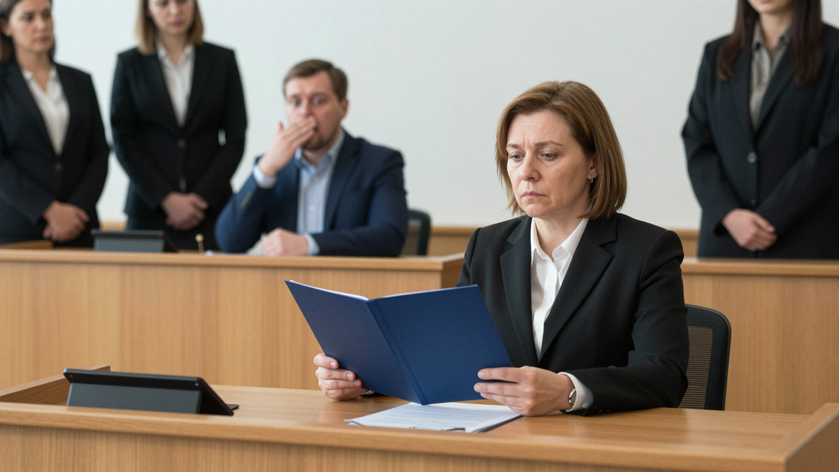 Судья взяла документ. Читала. Тишина в зале — только шуршание бумаги.