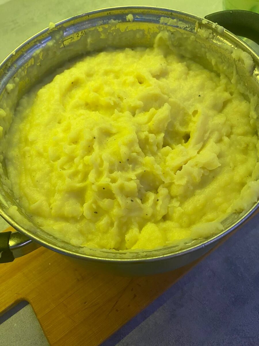 - Берём толкушку и старательно разминаем — до однородной массы.