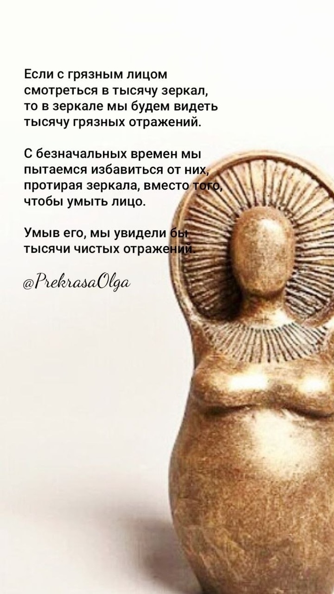 Смотришь вокруг — и в каждом отражении что-то «не так»: кто-то не любит, кто-то не ценит, кто-то предаёт, мир грубый, мужчины «не те», дети «сложные», тело «не такое». Мы как будто бесконечно заняты тем, чтобы «протирать зеркала»: чинить партнёра, воспитывать всех вокруг, менять города, квартиры, работу, окружение, обрезать «токсичных» людей, переписывать реальность под свои ожидания. Но если вспомнить буддийский образ, который цитирует Пелевин: если смотреться в тысячу зеркал с грязным лицом, мы увидим тысячу грязных отражений. И сколько бы мы ни протирали стекло, отражение не станет чище — пока мы не умоем само лицо. В шаманском и целительском языке это «лицо» — наш внутренний мир: старые травмы, обиды, страхи, стыд, детские решения «со мной что-то не так», убеждения вроде «любовь нужно заслужить» или «я одна всё вытяну». Пока внутри больно и грязно, мир будет верно и преданно это подсвечивать: повторяющимися сценариями, одинаковыми типами партнёров, одними и теми же уроками, да