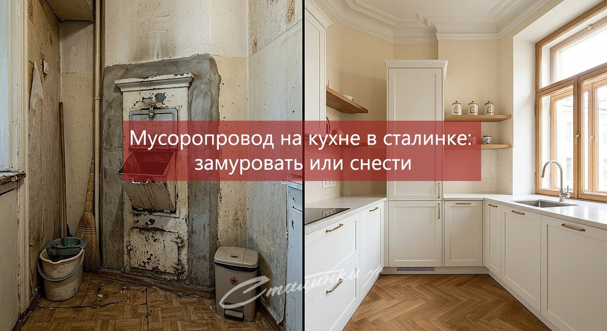 Мусоропровод мог находиться прямо на кухне в домах сталинской постройки. Это было характерно для некоторых сталинских домов, в частности, в высотках и массивных кирпичных 9-этажках 1948-1955 годов постройки.