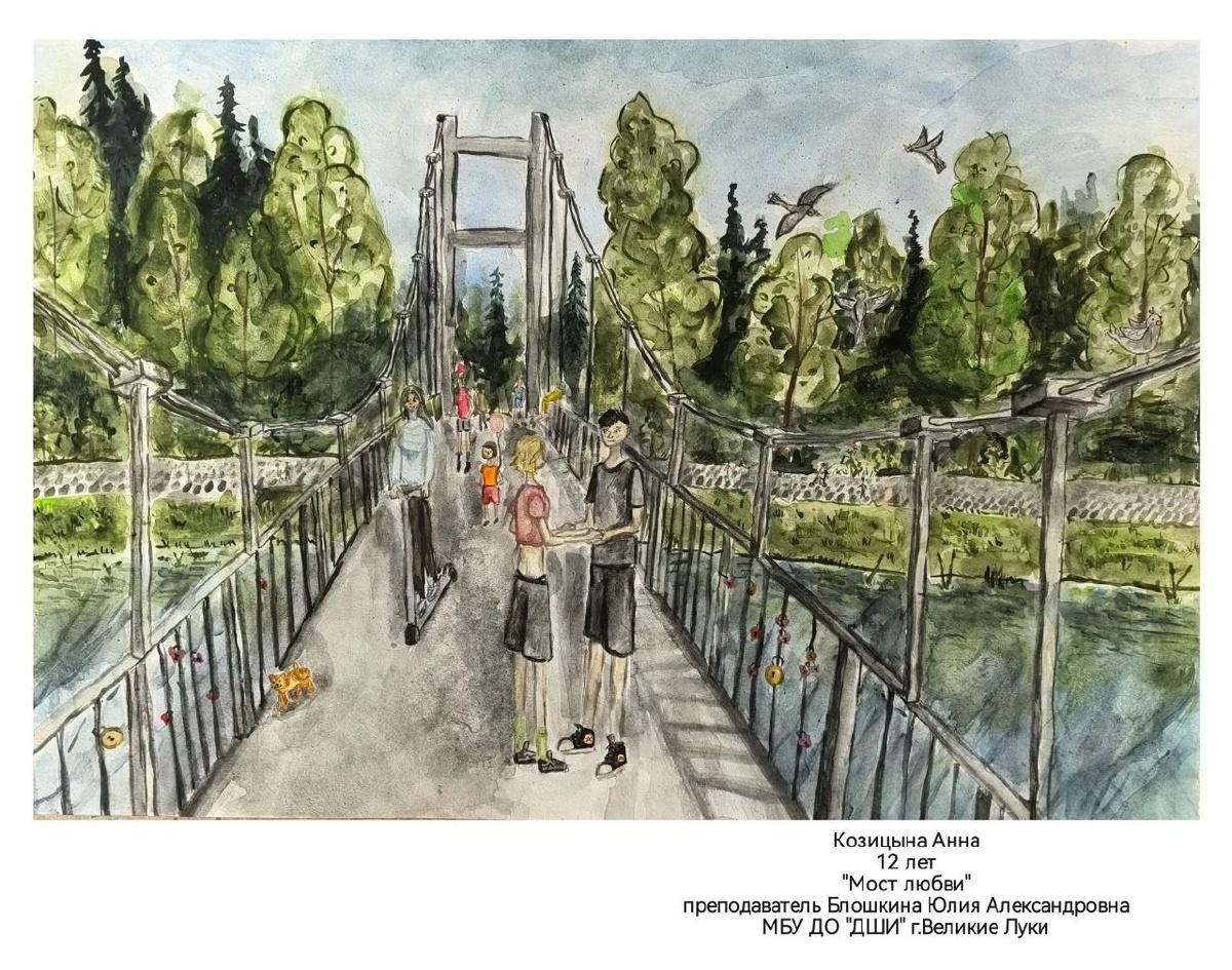✨ В Великих Луках запускают новую тематическую рубрику о культурной жизни города. Проект приурочен к празднованию 860-летия со дня первого упоминания города в летописи, которое отметят в 2026 году. 🎨 В центре внимания окажутся изобразительное искусство, музыка, театр и народные традиции. Материалы расскажут как о достижениях признанных мастеров, так и о творчестве юных дарований. 🖼️ Первые публикации посвящены работам воспитанников Детской школы искусств. Одной из знаковых картин стала работа «Мост любви» ученицы Анны Козициной, изобразившей пешеходный мост через реку Ловать. 👉ВЛуки.ру