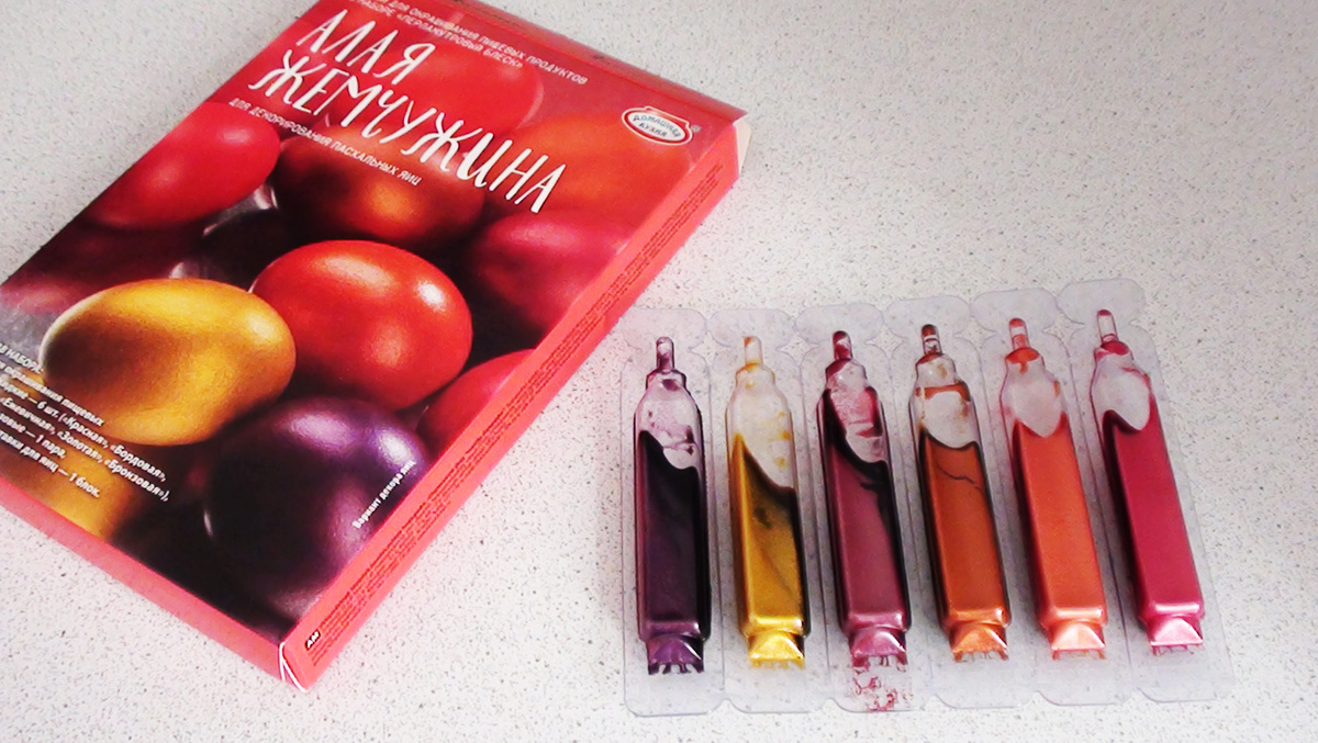 Обожаю красить яйца и уже несколько лет крашу именно жидкими красителями, они не впитываются в скорлупу и не выкрашивают само яйцо. Выглядят очень красиво и блестят на солнце. Жидкие красители есть разных цветов, я выбрала набор в котором есть золотой цвет. Яйца нужно сварить и оставить в кипятке, красить нужно именно горячие. Варю всего минуту, а дальше они сами дойдут пока будут остывать. Красители нужно разрезать на отдельные ампулы. Каждую подержать 30 секунд в кипятке и хорошо растрясти. Потом срезать верх ампул. Красить лучше в резиновых перчатках, так удобнее. На одно яйцо я капаю 5 капель краски, лучше сразу побольше, чем потом домазывать. Яйца которые красим в один цвет достать из воды и вытереть полотенцем. Перед каждым новым цветом вымыть перчатки и хорошо вытереть от воды. Краску размазать по перчатке и положив в ладонь яйцо втереть краску, когда оно окрасилось, перекидываем из руки в руку, до тех пор, пока оно не начнёт прилипать к рукам. Красивые, перламутровые яйца г