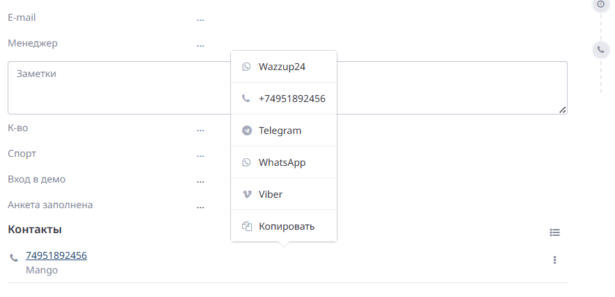 - Централизованное хранение. Вся история переписки хранится в карточке клиента в SportCRM. Это гарантирует сохранность данных, позволяет коллегам подхватывать диалог и дает руководителю полный контроль.