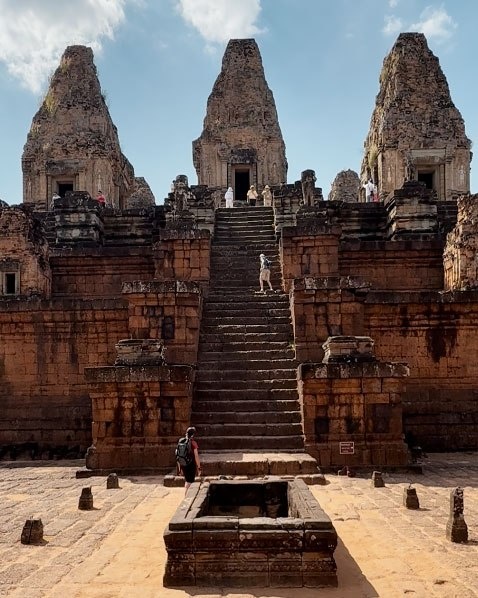 ». Как считают сами камбоджийцы, здесь совершались королевские кремации, но археологически это не подтверждено. Перед входом в храм стоит массивная каменная «цистерна», которую туристы часто принимают за место кремации, но это просто бывший постамент для бронзовой статуи Нанди — священного быка Шивы. Да и само название «Пре Руп» в древних надписях не встречается — оно сравнительно позднее. Скорее всего, это все же красивая народная легенда, но кто знает? Атмосфера здесь всё же действительно особая (фото увы не передает). Храм построен из латерита и кирпича — на закате он буквально горит красно-оранжевым. Три яруса пирамиды воплощают гору Меру, на вершине — пять лотосовых башен. Центральная посвящена Шиве (здесь стоял главный лингам), угловые — снова Шиве, Уме/Парвати, Вишну и Лакшми. Ворота и стены украшены рельефами с индуистской мифологией Хотя легенда и не подтверждена, этот храм один из самых запоминающихся из храмов Ангкора. ॐ नमः शिवाय 🔱 #дневник #история #индокитай #кхмеры