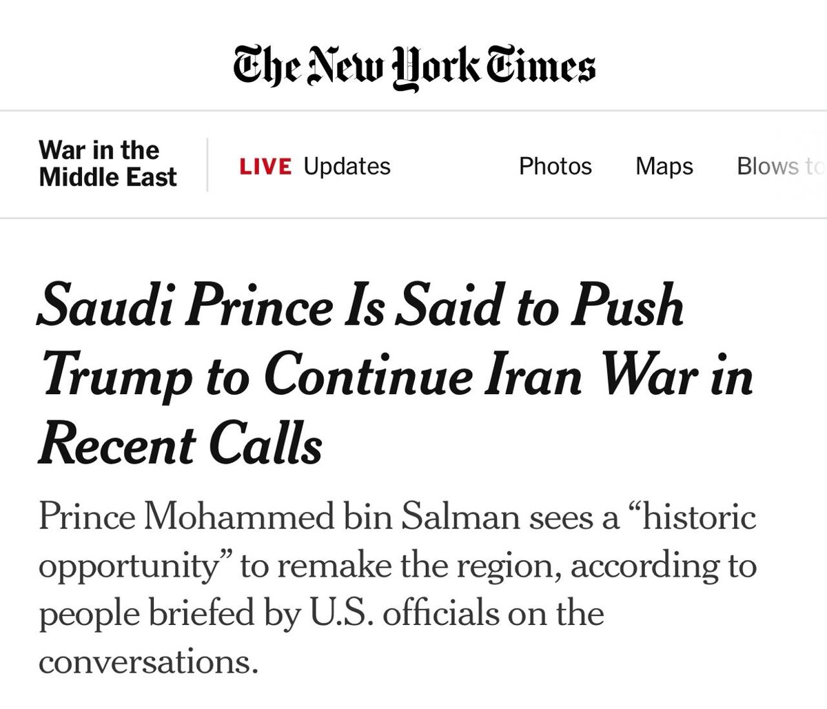 ❗️ Saudi Prince allegedly pushes Trump to keep Iran war going — NYT