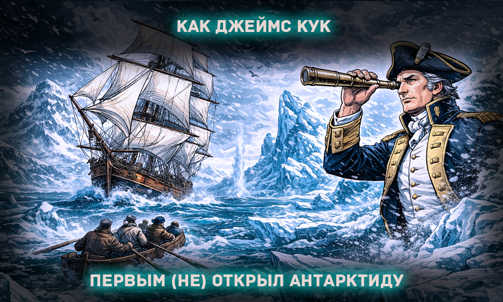 Кук прошёл в нескольких сотнях километров от её берегов. Он сам написал, что за ледяной стеной, скорее всего, что-то есть — и отказался это проверять. Разумно, учитывая корабли длиной 34 метра и полное отсутствие информации о том, что там можно встретить.