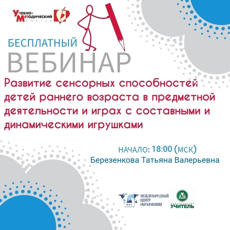 » Дата проведения: 25.03.2026 Начало: 18:00 (МСК) https://www.uchmet.ru/events/item/4070301/ Сенсорное развитие ребёнка неоспоримо остается важным и необходимым для полноценного развития и воспитания. В процессе сенсорного развития ребёнка формируется восприятие, представление о внешних свойствах окружающих тел: ребенок познает мир через ощущения, посредством различных анализаторов: слухового, зрительного, вкусового, обонятельного, тактильного. Чем богаче сенсорный опыт, тем успешнее идет познавательное развитие. На вебинаре слушатели познакомятся с влиянием ведущих видов деятельности детей раннего возраста на обогащение сенсорного опыта, узнают, как с помощью правильного подбора игрового материала и организацию развивающей предметно-пространственной среды показать ребенку новое и интересное. Содержательные вопросы вебинара: 1. Возрастные особенности восприятия детей раннего возраста. 2. Создание условий для обогащения и накопления всех видов восприятия в процессе предметной деятель
