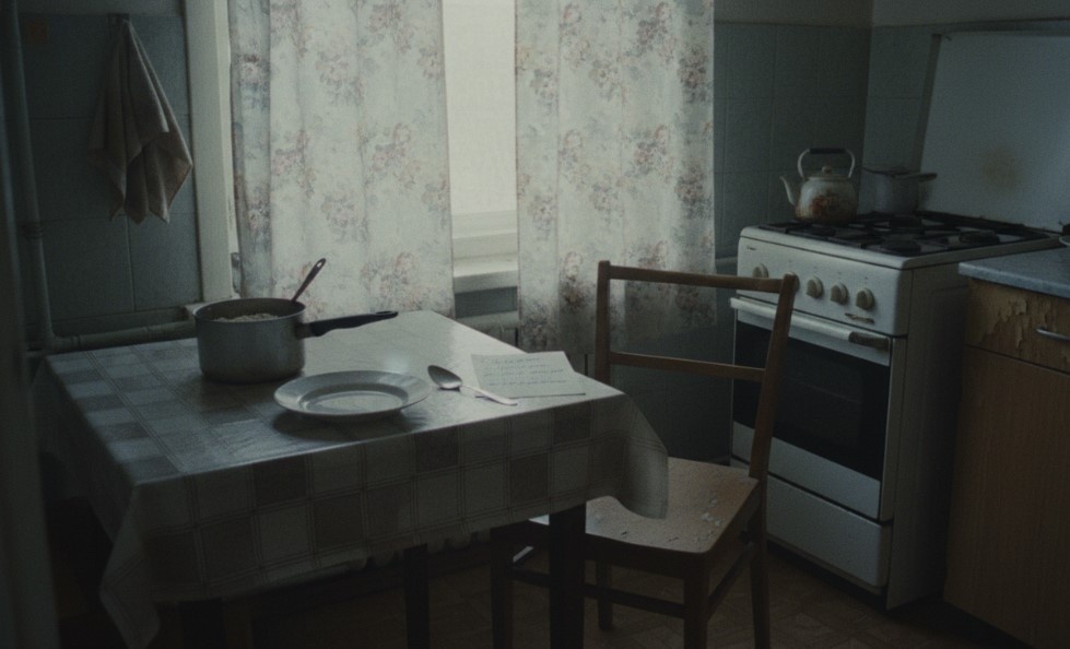 На столе стояла кастрюля с остывшей овсянкой. Рядом — чистая тарелка, ложка и записка. В записке было четыре слова: «Каша на плите. Я ушла».