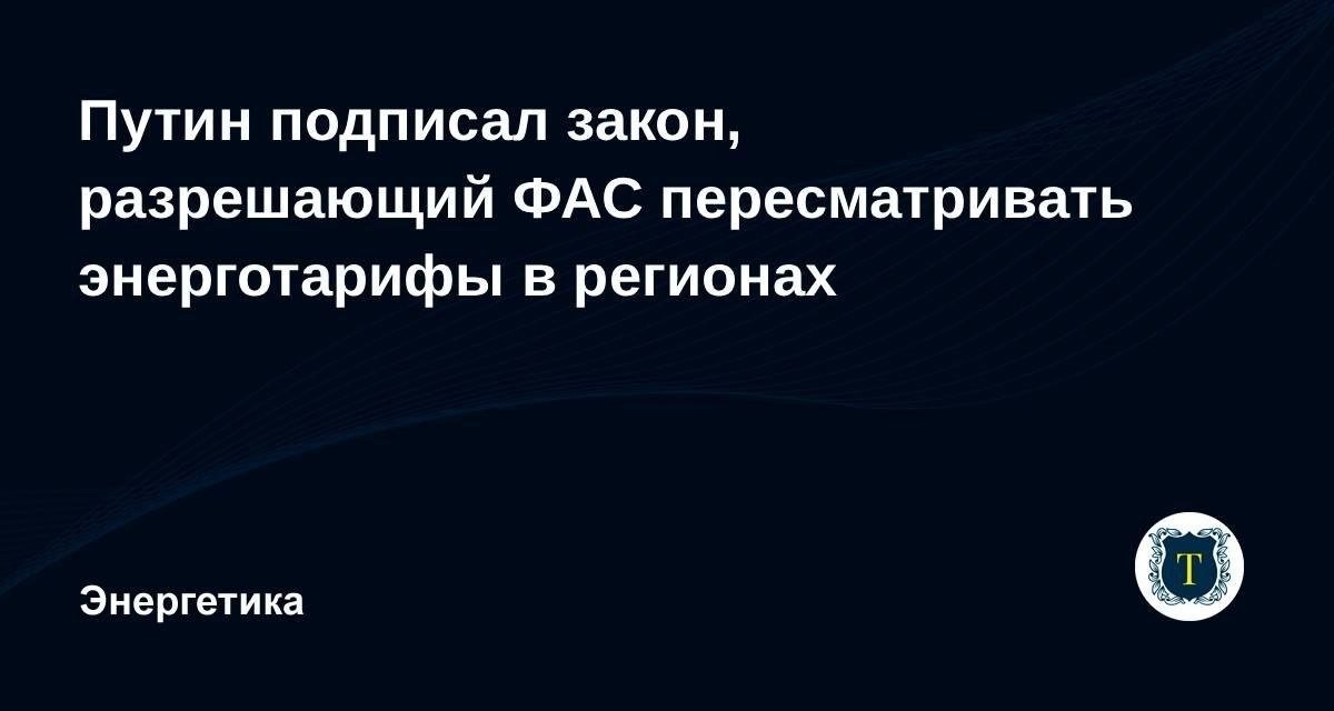 Президент подписал закон, позволяющий ФАС пересматривать тарифы на электроэнергию в регионах