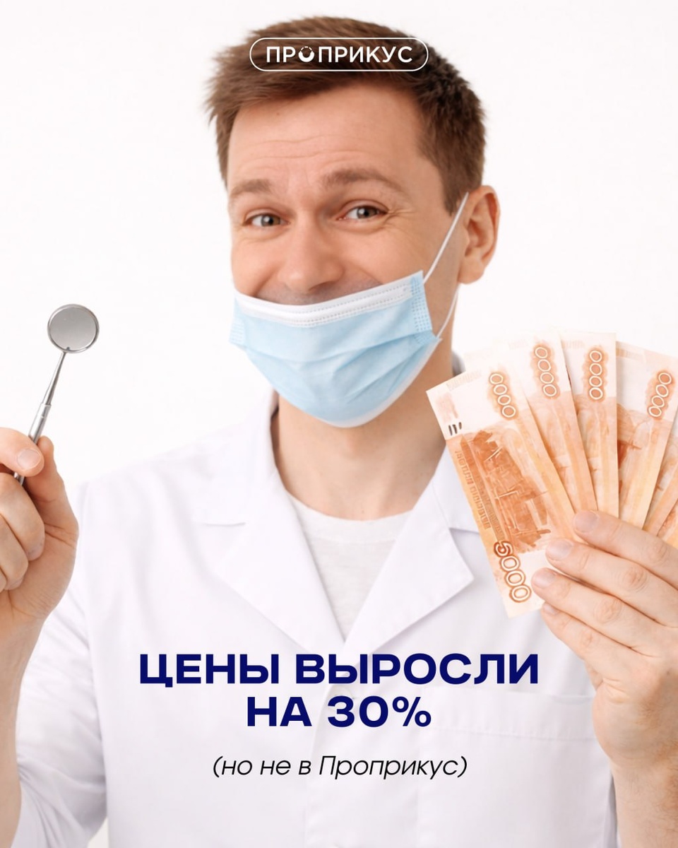 % 😱 В некоторых клиниках и городах цены могут вырасти до 50% к концу года. Основные причины: импортные материалы, логистика, аренда, налоги и зарплаты специалистов. Эксперты говорят: потенциал роста ещё не исчерпан. В ближайшие 1–2 года цены будут расти и дальше 🥲 Но есть хорошая новость 👇🏻 В ПРОПРИКУС мы держим цены 2025 года до конца марта. Если вы всё ещё думаете, откладываете, сомневаетесь, настало время решиться. Потому что дальше точно будет дороже. На что можно успеть записаться по старым ценам: 💸 Бесплатная консультация ортодонта + 3D-диагностика. Узнайте, что с вашим прикусом и зафиксируйте цены на лечение. 💸 Лечение кариеса. Своевременное лечение обходится ощутимо дешевле, чем экстренные вмешательства. 💸 Профессиональная гигиена. Профилактика реально сэкономит бюджет (лечить запущенное в 2–3 раза дороже). Посмотрите текущие цены на сайте или просто напишите нам, и мы расскажем, сколько будет стоить конкретно ваш случай.