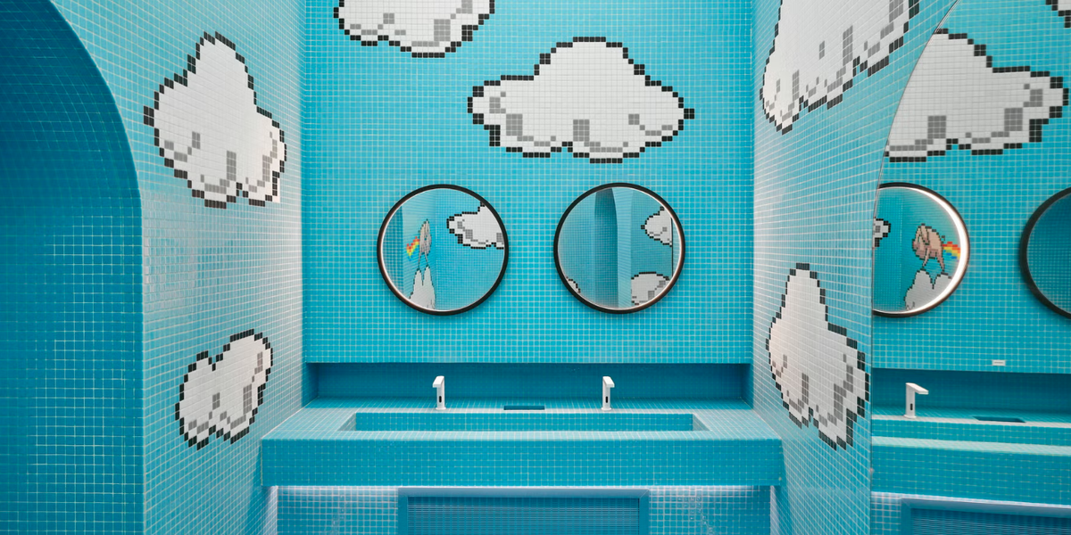 Ванные комнаты, как и остальная часть вашего дома, должны отражать ваши уникальные интересы и увлечения. Для архитектора и дизайнера Энтони Оти, основателя Zyva Studio, это означало использование ярких цветов и игривых культурных отсылок, таких как этот изготовленный на заказ на 3D-принтере держатель для зубных щеток светло-розового цвета, вдохновленный Спинисами, колючими угрожающими черепахами из Mario Bros.