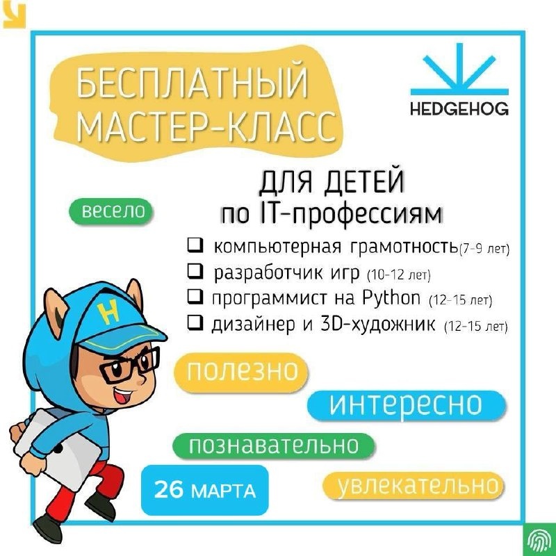 Интересные и полезные занятия, с погружением в профессию и созданием собственного проекта: 🔴погружение в современные профессии 💚создание своих проектов 💛друзья по интересам 🔴дома изучение теории на интерактивной платформе! Откройте мир самых перспективных и высокооплачиваемых профессий! Бесплатный IT-практикум: 📆Дата: 26 марта, время 13:30 и 14:40 📍Место: «Орион», ул. Земляничная, 28Б, Ригель кабинет ИКТ Запись на практикум