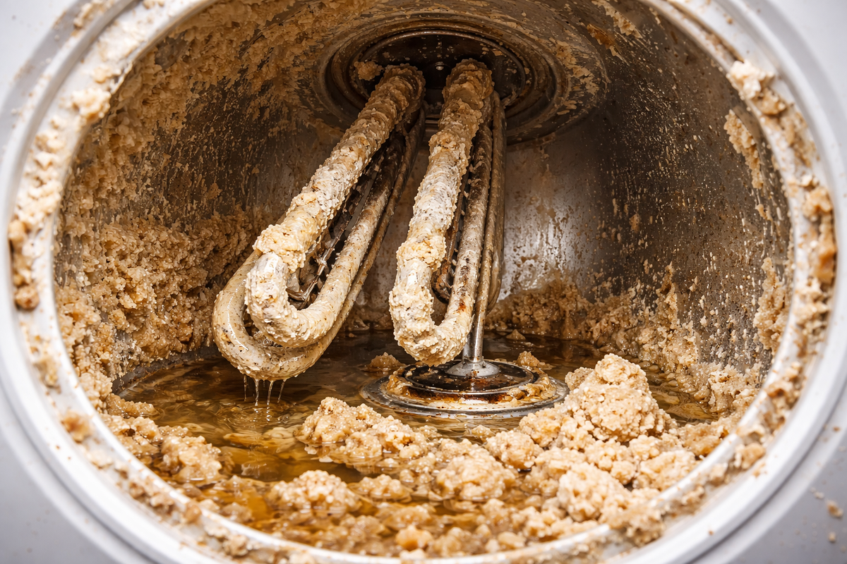 Жёсткая вода содержит соли кальция и магния. При нагреве и испарении они превращаются в твёрдый известковый налет. Сначала вы видите белые следы на смесителе и стекле душевой, потом начинается более неприятное: забиваются аэраторы, ухудшается ход керамических картриджей, быстрее изнашиваются прокладки, а на ТЭНах и внутри арматуры нарастает накипь.