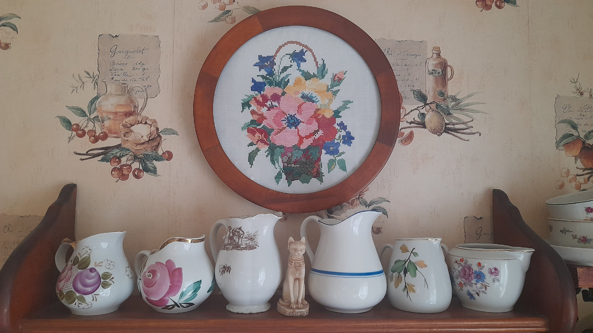 Рассказывая о своей последней поездке на барахолку, я предложила постоянным своим читателям попробовать самим отгадать, что же из показанного я там купила. По заставке к публикации вы уже поняли, что купила я сахарницу Хайта, которую я назвала "руки в боки". Большинство, а именно, 8 человек высказались определённо за неё. Некоторые назвали её в числе других сахарниц. 5 человек назвали Кремгэсовский сливочник. Отдаю ему должное, но не затронул он мою душу. Всё-таки его форма - это совсем не моё. Люблю сливочники более традиционных форм (см. фото). Вот такой я консерватор, и тут уж ничего не поделаешь - возраст. А вот "белое с золотом" - это точно моё. Просто и красиво. Просто и элегантно. А кроме того, это первая Хайта в моём собрании. Давайте уже полюбуемся на неё. Клеймо соответствует 70-м годам. В прекрасном состоянии, никаких дефектов, только золотой ободок на крышечке стёрся. Пыталась примерять ей другую шляпку, но мне кажется, что своя ей всё-таки лучше. Глядя на неё, ловлю се