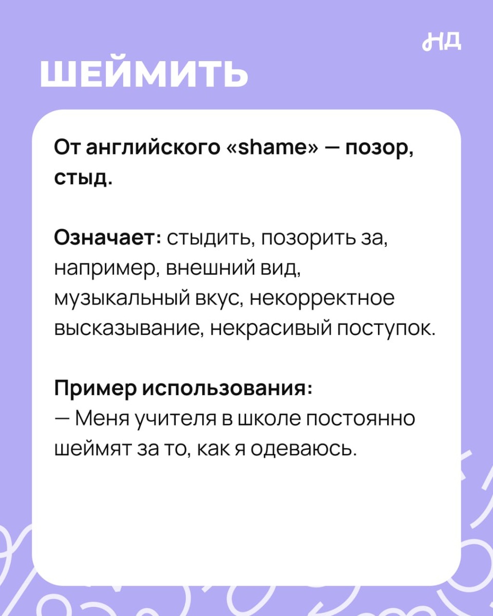 Шеймить — слово, которое подростки используют, когда говорят о том, что кого-то стыдят или осуждают