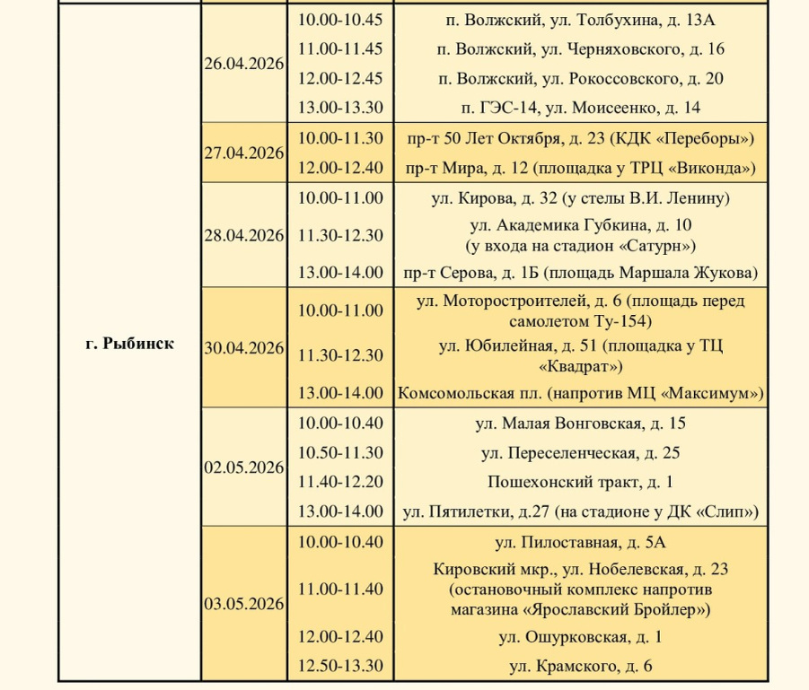 Домашних животных привьют в конце апреля Государственная ветеринарная служба Ярославской области проводит выездную вакцинацию мелких домашних животных от бешенства. В Рыбинске она пройдет с 26 апреля по 3 мая. Прививать кошек и собак вакциной «Рабикан» будут в мобильном ветеринарном пункте областного «Центра ветеринарии». График приема по районам: фото — страница ВК Государственная ветеринарная служба ЯО