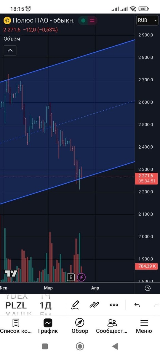 В таком случае буду ждать отката вниз к этой поддержке и на отскок с коротким стопом войду. Пример такой ситуации приложил: акции ленты пробили верхнюю границу канала, откатились в канал обратно и потом цена вернулась и сразу отскочила очень точно и теперь лента падает