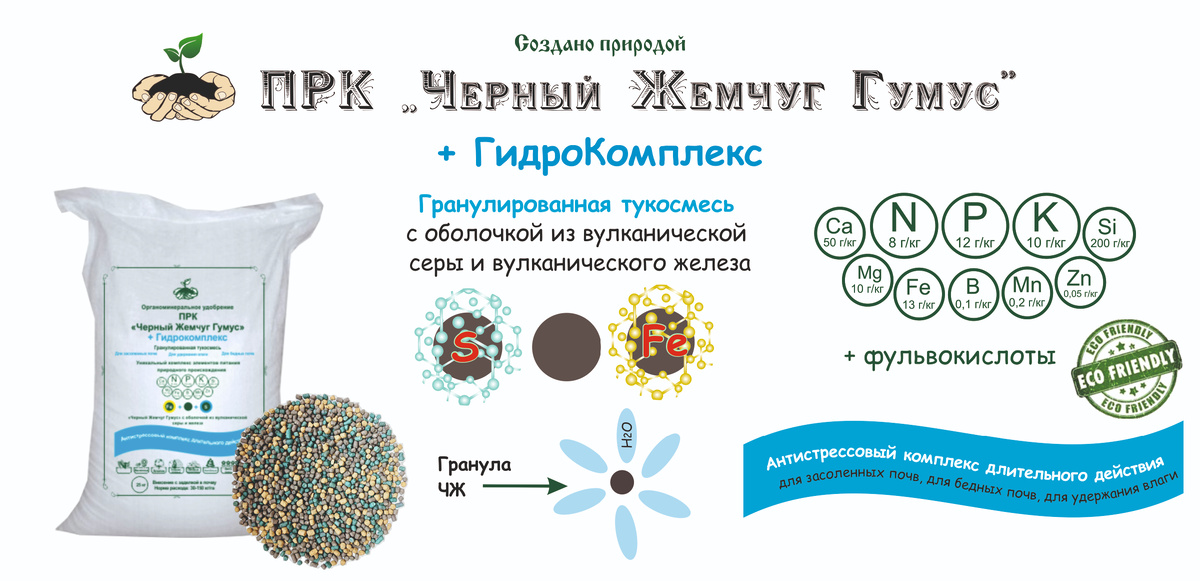 Крымское земледелие — это всегда игра на выживание. Дефицит осадков, суховеи и высокая минерализация поливной воды делают вопрос влагосбережения вопросом выживания бизнеса. Инновационный мелиорант ПРК «Черный Жемчуг Гумус» + Гидрокомплекс стал для многих хозяйств полуострова тем самым инструментом, который позволяет получать урожай даже в экстремально сухие годы. В чем секрет «эффекта губки»? «Черный Жемчуг Гумус» + Гидрокомплекс — это не просто удобрение, а почвенный кондиционер. Его гранулы работают в прикорневой зоне по принципу накопителя: 1. Удержание влаги: Препарат поглощает доступную воду (осадки, роса, полив) и удерживает её в зоне корня, не давая ей уходить в глубокие слои или испаряться. 2. Экономия полива: Опыт показывает, что потребность в орошении снижается на 20-30%, так как коэффициент использования воды растением резко возрастает. 3. Аэрация: Даже при сильном увлажнении гранулы сохраняют структуру почвы, предотвращая образование корки и обеспечивая доступ кислорода к к