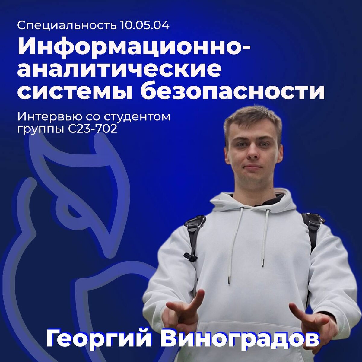 Поговорили со студентом специальности «Информационно-аналитические системы безопасности» (10.05.04) — Георгием Виноградовым из группы С23-702. Он рассказал, как строится учебный процесс, какие предметы запомнились больше всего и почему ИАСБ — это больше, чем просто программирование. А главное — искренне поделился, почему ни разу не пожалел о выборе вуза и специальности и кому точно стоит сюда поступать. Почему ты выбрал НИЯУ МИФИ и конкретно специальность «Информационно-аналитические системы безопасности» (ИАСБ)? После сдачи экзаменов я не был готов сказать, чего я хочу от жизни. Тогда я решил лично приехать в приёмную комиссию НИЯУ МИФИ, чтобы пообщаться со студентами, узнать об учебных дисциплинах и понять, кем я буду после окончания обучения. Изначально я рассматривал физические направления, ведь я сдавал физику, но быстро разочаровался в них. Затем мой взор упал на ИФТЭБ. После моих неопределённых ответов о том, чем я хотел бы заниматься, Давид Самвелович Налбандян рекомендовал мне