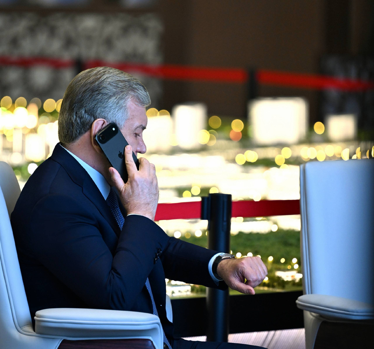 И вот сегодня, во время визита в Новый Ташкент, фотографам удалось частично приоткрыть завесу тайны. В кадр попал Шавкат Мирзиёев, разговаривающий по телефону. Причём ракурс получился достаточно удачным, чтобы интернет-детективы тут же включились в работу.