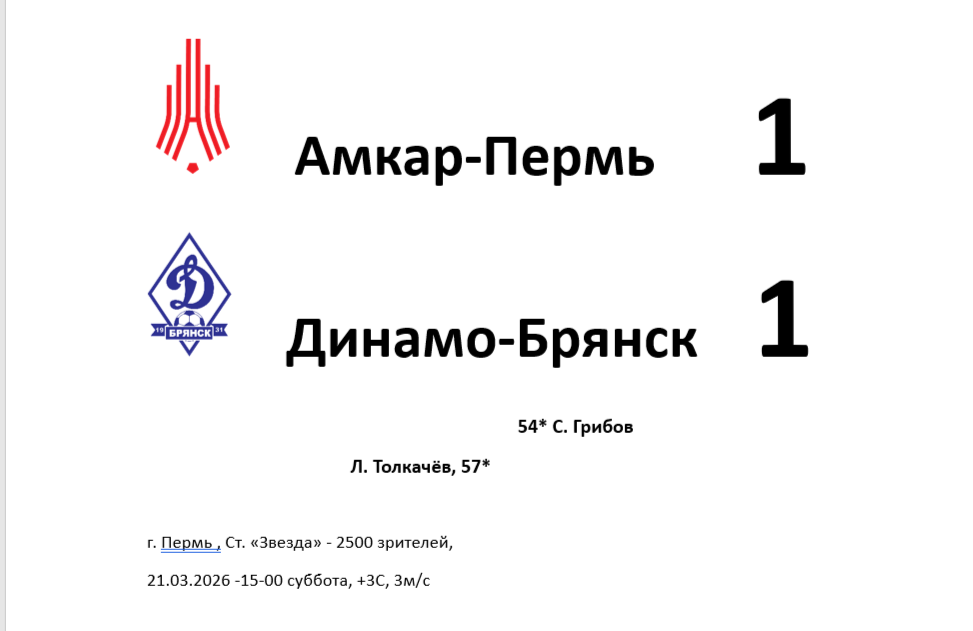 Но, увы брянским болельщикам, которых было аж 10 человек в Перми, радоваться пришлось не долго..