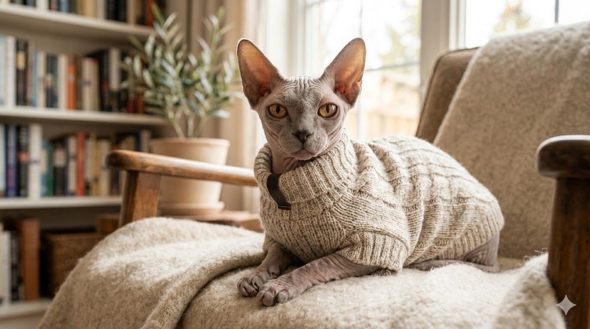 Сфинксы — это ходячие обогреватели. Температура их тела выше, чем у нас, а отсутствие шерсти заставляет организм тратить уйму энергии на обогрев.