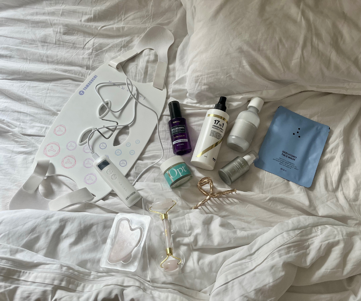 - затем уходовые процедуры за лицом - сыворотки, кремушки, LED маска и тд.