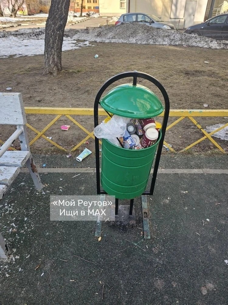 ‼️ Добрый день! Уже почти неделю на детской площадке напротив Парковой 8 мусорки вот в таком состоянии. Мусор уже по газону и площадке разлетается.