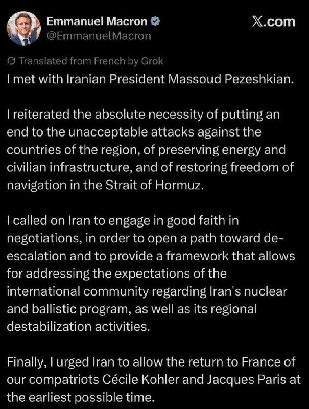 Macron tells Iran to negotiate