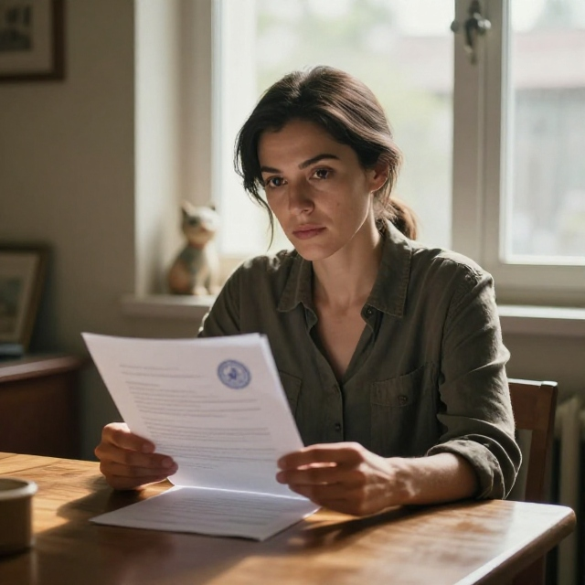 Конверт лежал прямо между кошельком и записной книжкой - аккуратный, белый, с синей гербовой печатью. Она достала его машинально, думая, что это какая-то квитанция. Пальцы сами разорвали край. Развернула. Прочитала первую строчку - и мир вокруг нее резко сузился до размеров этого листка плотной бумаги.