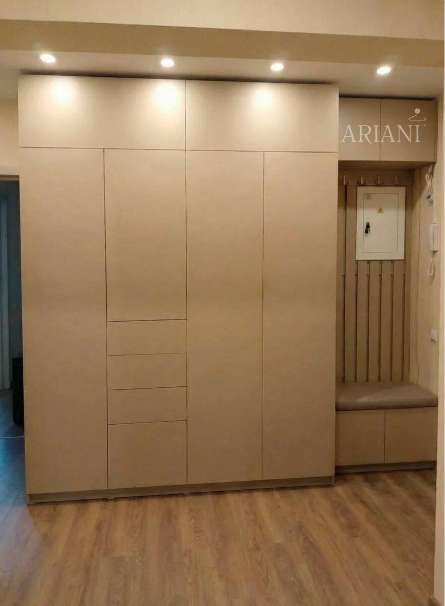 Хорошая прихожая — это когда заходишь и сразу спокойно. Ничего не цепляет взгляд, но всё лежит там, где удобно именно тебе. И в этом тихом порядке чувствуется, что всё сделано с умом и для жизни. Здесь задача была именно такой: спрятать максимум, оставить ощущение легкости и сделать так, чтобы каждый уголок в этом пространстве был удобным. Наша команда «Ариани» выстроила цельную композицию во всю высоту — 2437 мм и шириной 2675 мм. Без дробления, без лишних акцентов — только ровные плоскости и архитектурная логика. Вместительный шкаф глубиной 600 мм, в котором всё организовано внутри: сетчатые полки, скрытые направляющие с отталкивателем делают использование почти незаметным. Тумбочка с вешалками глубиной 450 мм и мягкое сиденье - чтобы было удобно снять обувь и разместить сезонную одежду, повесить ключи. И именно здесь спрятана одна из самых «жизненных» деталей — розетка и роутер. Мы убрали технику внутрь тумбы, сохранив к ней лёгкий доступ. Даже электрический щиток не стал про