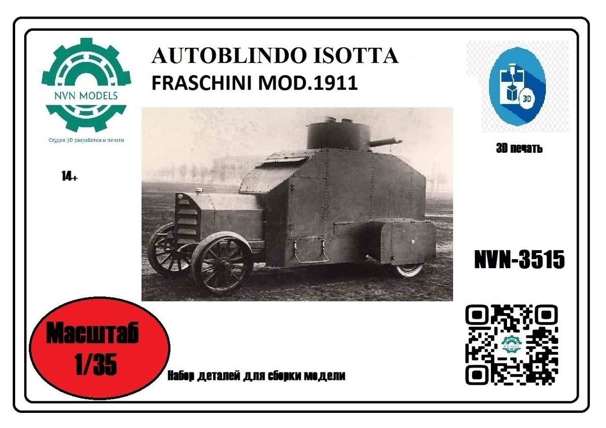 НВН МОДЕЛИ 3Д выпустили в продажу модель броневика Isotta-Fraschini 1911 в 1/35 масштабе.