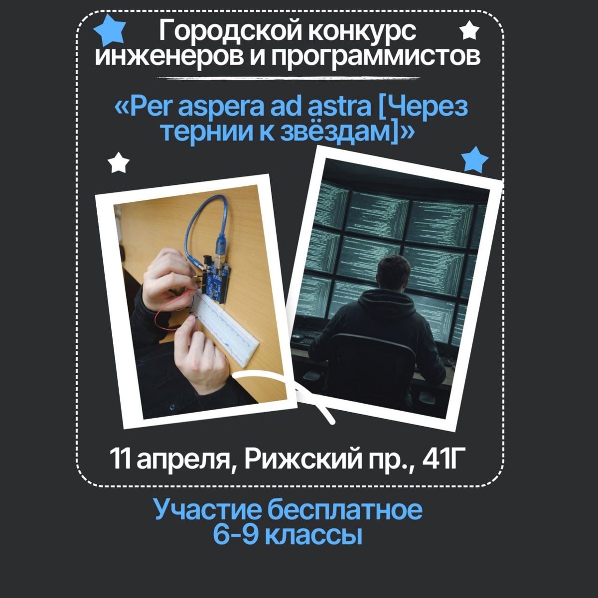 Приглашаем на городской конкурс инженеров и программистов «Per aspera ad astra [Через тернии к звёздам]» для учащихся 6–9 классов и на День