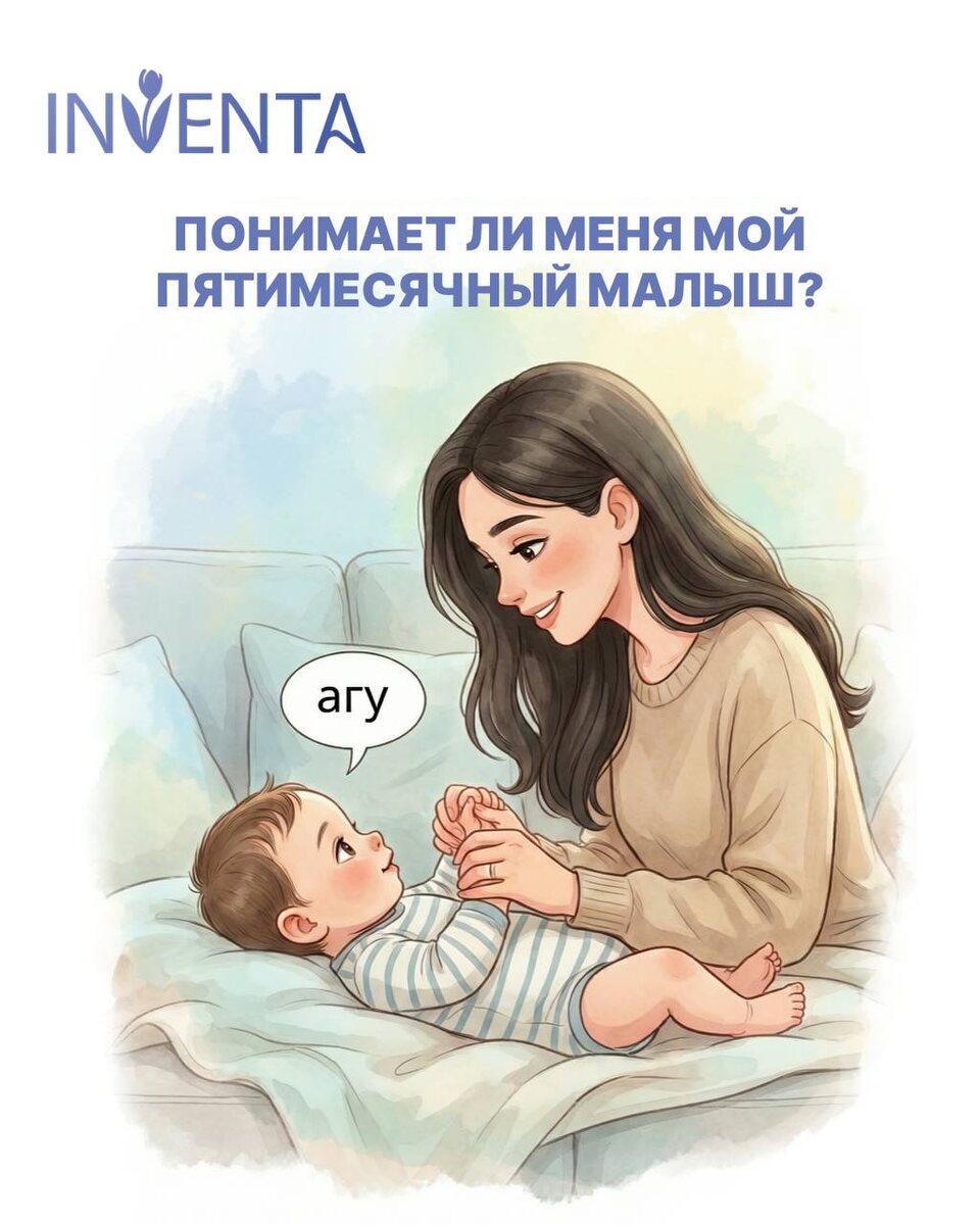 ? «Разговаривайте с ребёнком!» – этот совет слышит каждая мама. Но глядя на своего кроху, многие задаются вопросом: а он вообще что-то понимает? Есть ли смысл в этих разговорах? 🤔 Давайте разбираться! Итак, вопрос: ❓Я постоянно слышу, что очень важно разговаривать с ребёнком, но действительно ли мой пятимесячный малыш понимает, что я ему говорю? Хотя маленькие дети ещё не понимают значения слов, ранние разговоры помогают развивать их речевые навыки. Когда дети снова и снова слышат вашу речь, стимулируются языковые зоны мозга. Чем больше речи они слышат, тем активнее эти зоны развиваются. Рассказывание историй о повседневных событиях, пение песен о людях и местах, которые знакомы ребёнку, описание того, что происходит вокруг в течение дня – всё это даёт малышу надёжный старт для освоения ранних речевых навыков. Младенцы сосредотачиваются на речи и развивают её в первую очередь потому, что хотят общаться с вами. Разговоры один на один, зрительный контакт и повторение гуления и во