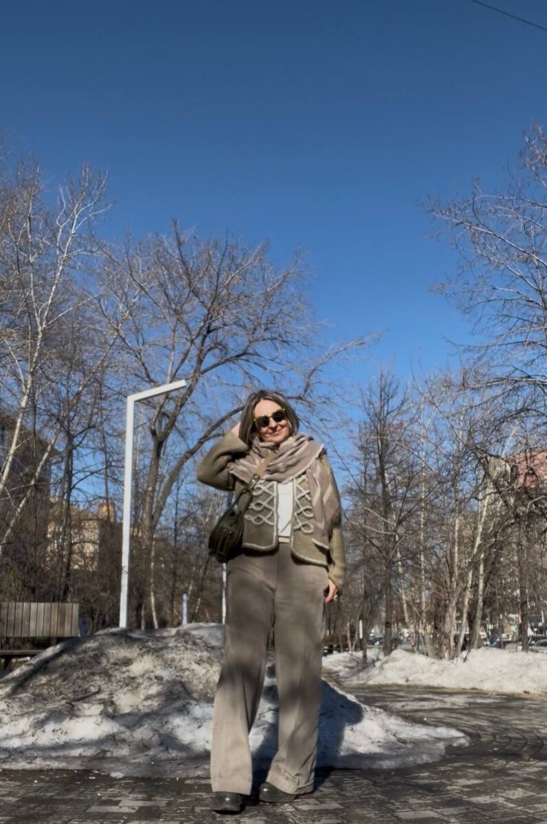 !!! Ну что, случилось — первый выход моего жакета в свет ✨#доломан #гусарскийжакет #жакетвязаный И да, я не стала ждать, пока он станет «идеальным». Носить хочется уже сейчас. Выгуляла его в паре с замшевым пиджаком — и, честно, мне нравится этот слегка неидеальный союз. Когда вещь ещё в процессе, но уже задаёт настроение и собирает образ. Но давайте честно — я всё ещё в режиме «думаю»: нужны ли подплечники или оставить мягкую линию? рукав — укоротить или пусть будет длиннее и расслабленнее? и как вообще оформить низ, чтобы было не скучно, но и не перегрузить? Отдельная история — застёжка. Скорее всего, без неё не обойтись. Думаю связать пуговицы и придумать какие-то свои петли — чтобы не как у всех, а с характером. В общем, это тот самый проект, который живёт и меняется вместе со мной. Я его ещё «докручиваю», а он уже выходит в люди 👣👣👣👣 Ну что скажете — оставить так или доводить до идеала?