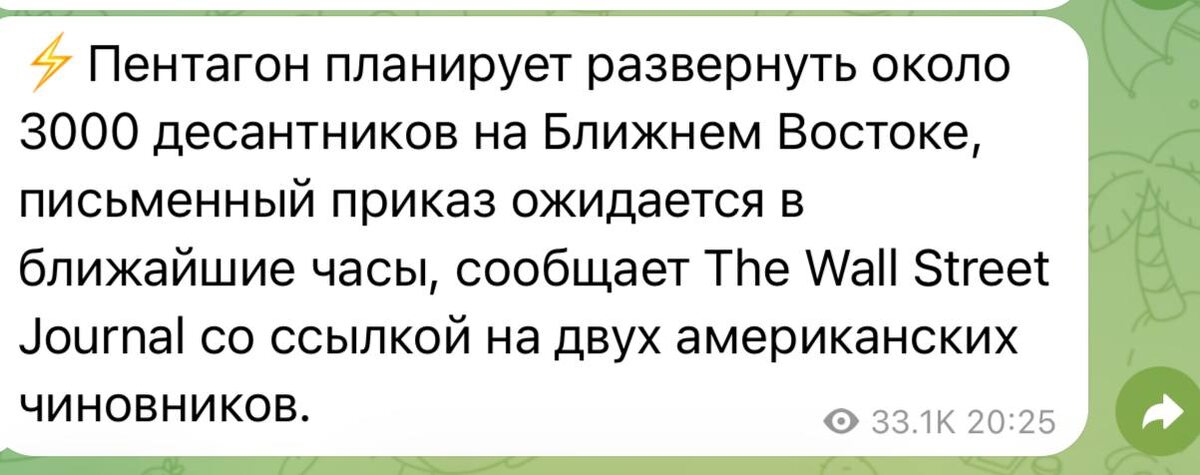 «развернуть десантников» это хорошо. Как пить дать, наземная операция начнется в выходные. В стиле Трампуши.